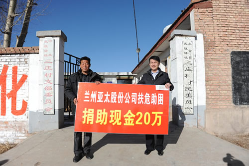 兰州亚太股份公司扶危助困向永登三庄村农村基础建设捐款二十万元